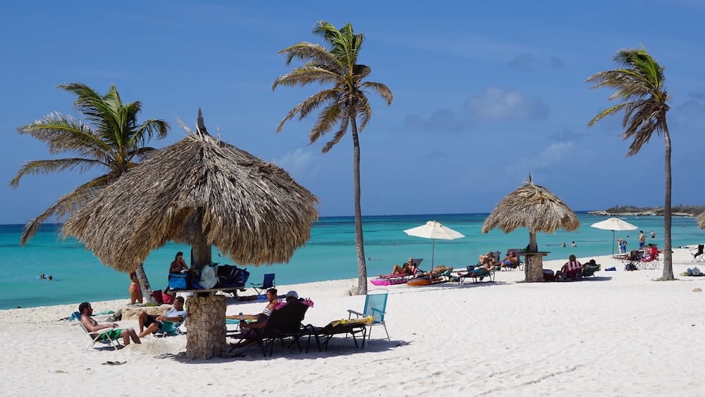 Arashi Beach boasts powdery white sand that feels soft underfoot, creating an idyllic setting for beachgoers who appreciate comfort as they bask in the Caribbean sun. The clear azure waters invite visitors to take a refreshing dip. While Arashi Beach may not have rocky areas or reefs directly at the beachfront, it is still known for good snorkeling opportunities due to its proximity to coral formations nearby, which attract an array of colorful fish and marine life.