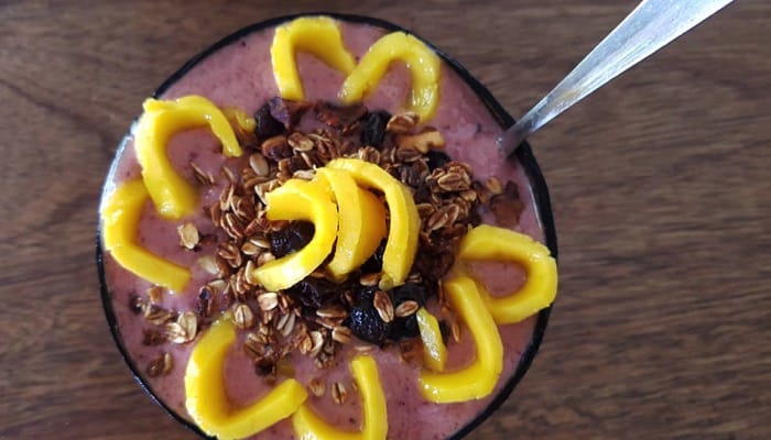 On the small hill before reaching Cloud 9 break. For breakfast bowls, coffee and shakes. Try the very healthy tasting "energy" balls.