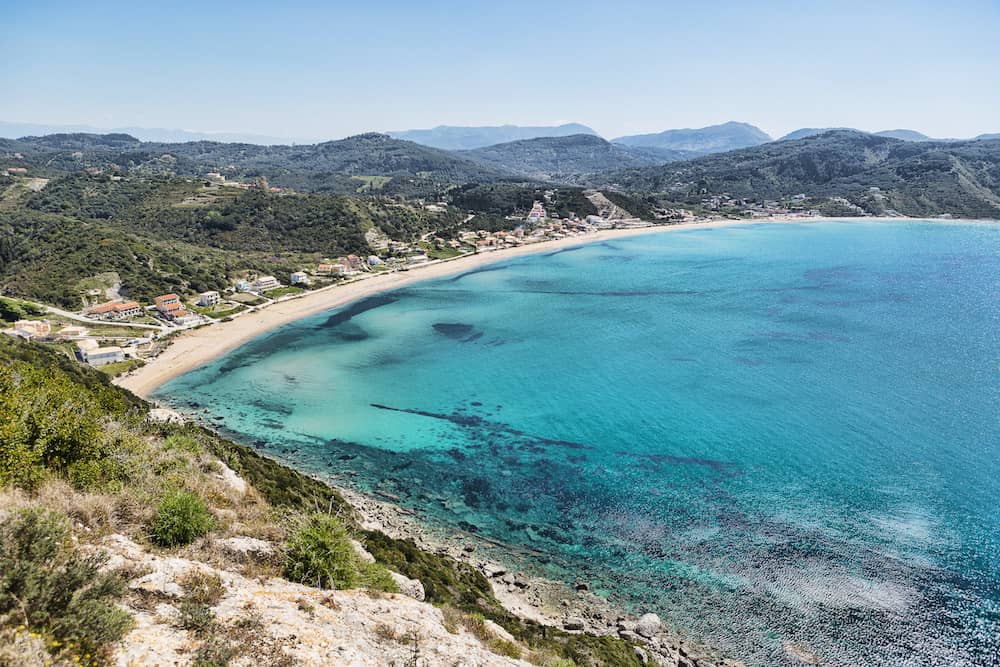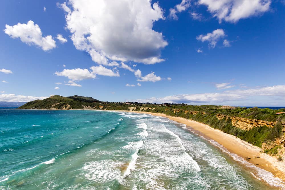 Agios Georgios Beach is located on the southwestern coast of Corfu Island in Greece. This long sandy beach stretches for approximately 5 kilometers (3 miles), providing ample space for sunbathing and relaxation. The shallow waters make it an excellent spot for families with young children or inexperienced swimmers.
