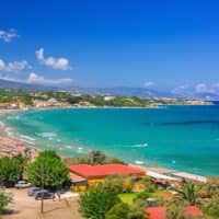 Kerkira Beach, located on the island of Corfu in Greece's Southern Europe region, offers stunning views and crystal-clear waters. The climate in this area is Mediterranean, with hot summers and mild winters. The annual weather provides plenty of sunshine for beachgoers to enjoy.