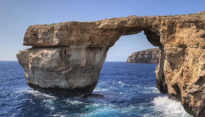 The Azure Window in Gozo, Malta is a popular tourist attraction.
