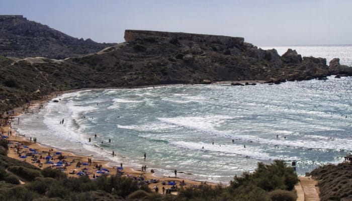 Ghajn Tuffieha Beach and neighbouring Golden Bay Beach are some of the most popular beaches in Malta.
