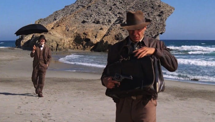 Indiana Jones' father, played by Sean Connery, single handedly takes down a fighter plane by scaring seaguls into the air using his umbrella on Monsul Beach in Almeria.