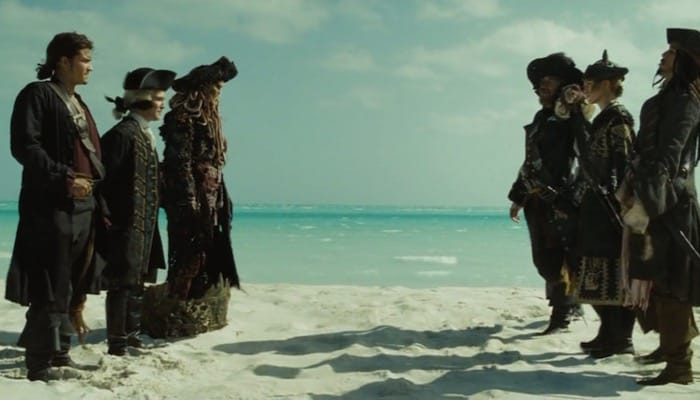 The scene of the Parley between the pirate captains were shot at White Cay near Little Exuma Island in the Exumas, in eastern Bahamas.