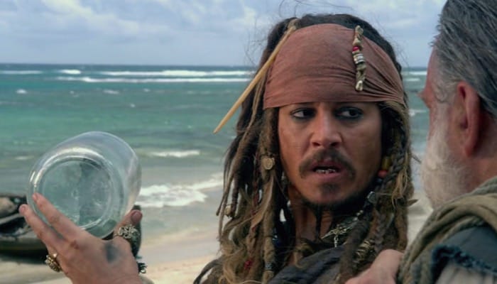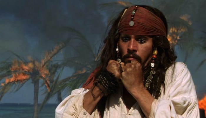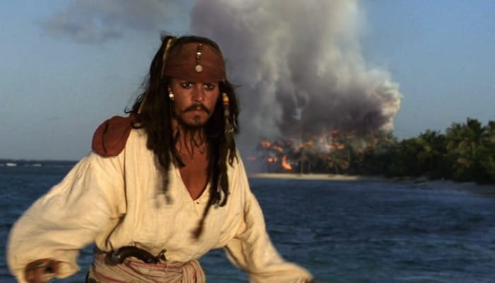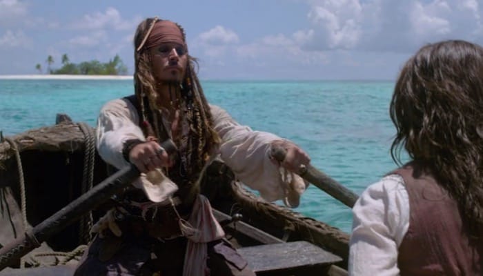 Earlier in the film Jack tells a tale of how he once escaped the very same island by lashing together two sea turtles with hair from his back and riding them to freedom.