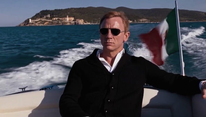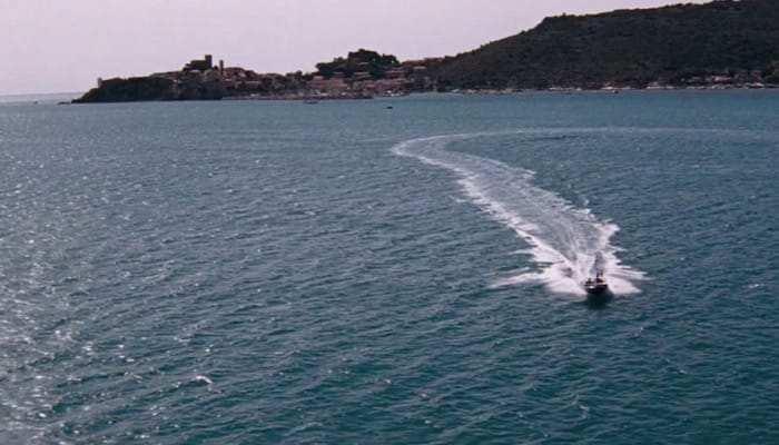 Bond is brought to Villa Le Torre located 6km (4 miles) from Talamone on a vintage Sunseeker Sovereign 17 motorboat.