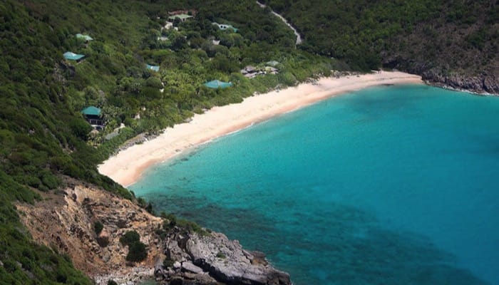 Necker Island Necker Island, located in the British Virgin Islands, belongs to “celebrity businessman” Sir Richard Branson (founder of the Virgin Group of companies). Boasting 74 acres of pristine tropical land, all surrounded by coral reef and crested by shimmering white sandy beaches, Necker Island is more than just a fancy celebrity residence, it's a resort: One of the first (and most expensive) celebrity-owned private islands to be made available for rent as a resort. Its rooms offer up to 24 guests panoramic views out over the gleaming turquoise ocean—so long as they can afford the staggering $47,000 price tag. So far, the island has hosted a glamourous list of top celebrities, including Kate Moss and Steven Spielberg.